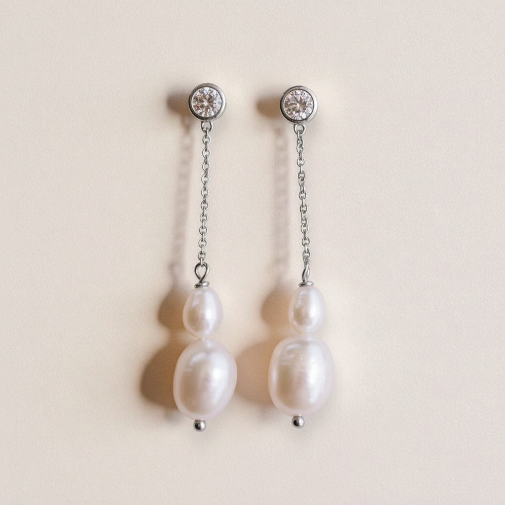 Our Cosette Pearl Dangle Earrings are so chic and minimalist! These stunning drop earrings feature freshwater pearls that dangle gracefully, perfect for bridal jewelry, wedding parties, or a romantic night out. Why do we love them? The minimalist design paired with the organic elements of the pearls make for a versatile jewelry piece you can wear day and night!