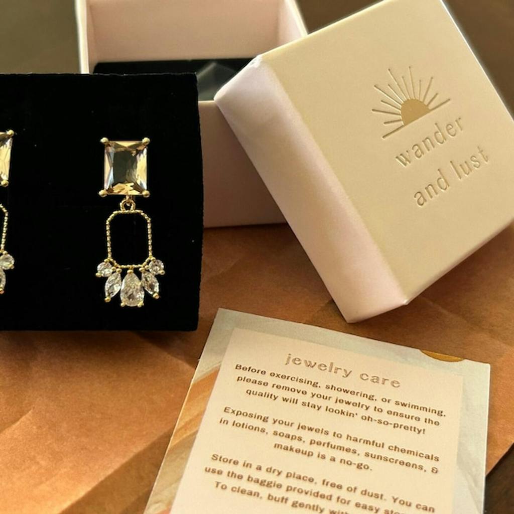 All of our jewelry is beautifully hand-wrapped in foil-pressed gift boxes, with the option to add-on a soft velour baggie. Perfect for gifting (or treating yourself), each order is finished with a handwritten note to make it extra special.
