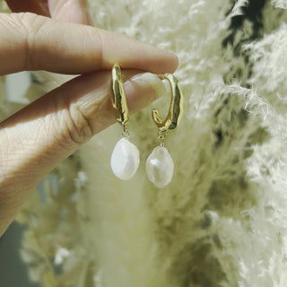 Freshwater pearl drop, hand wire-wrapped onto the hoop
