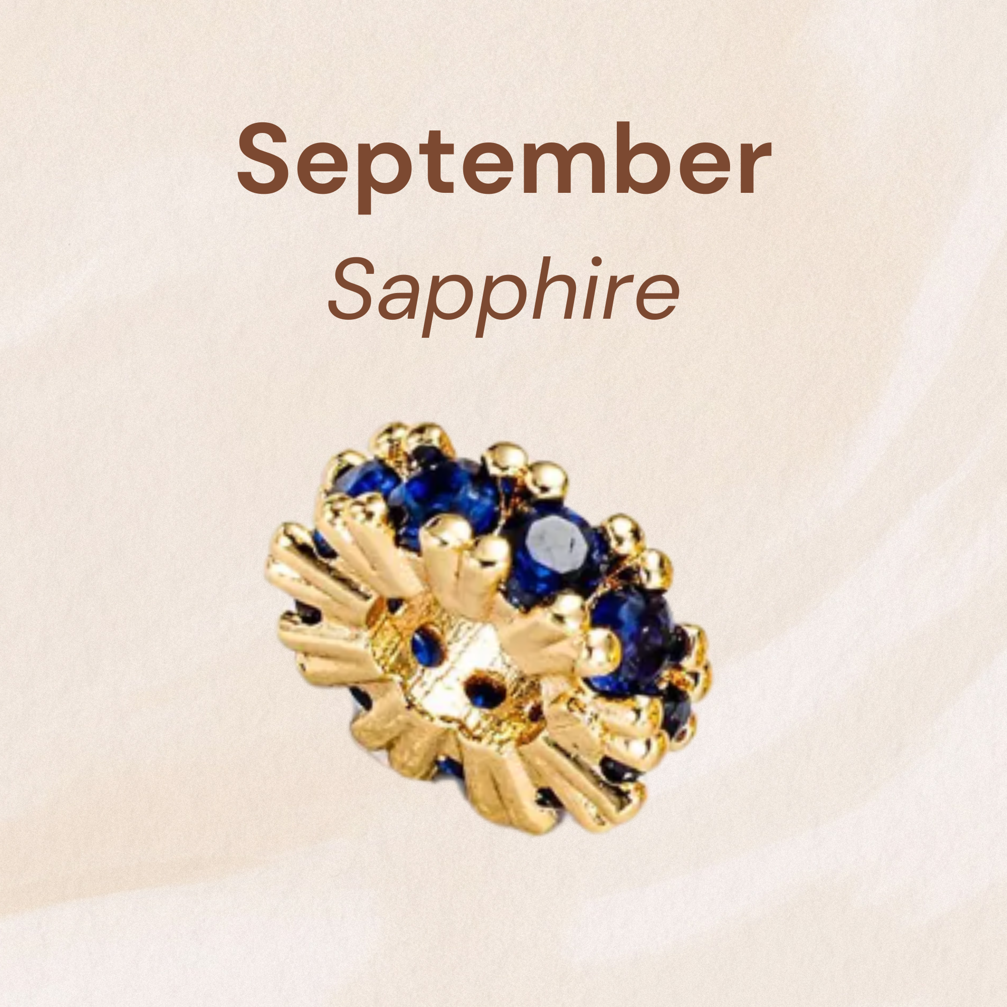 Our September Sapphire Birthstone Charm dazzles with deep blue hues that signify loyalty, wisdom, and protection.