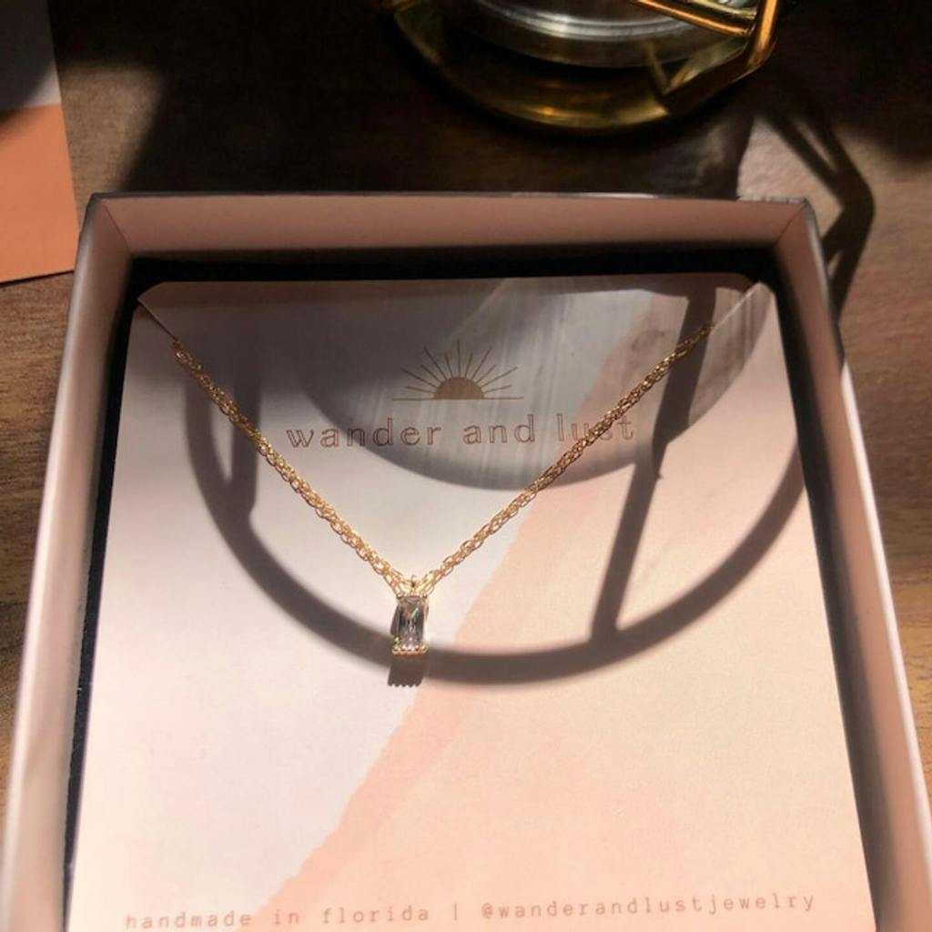 Our Remi Necklace is your new favorite dainty, everyday necklace. This delicate necklace features a tiny cubic zirconia rectangle that is so petite and sparkly! It hangs on a very thin, yet strong 14k gold filled or sterling silver rope chain.