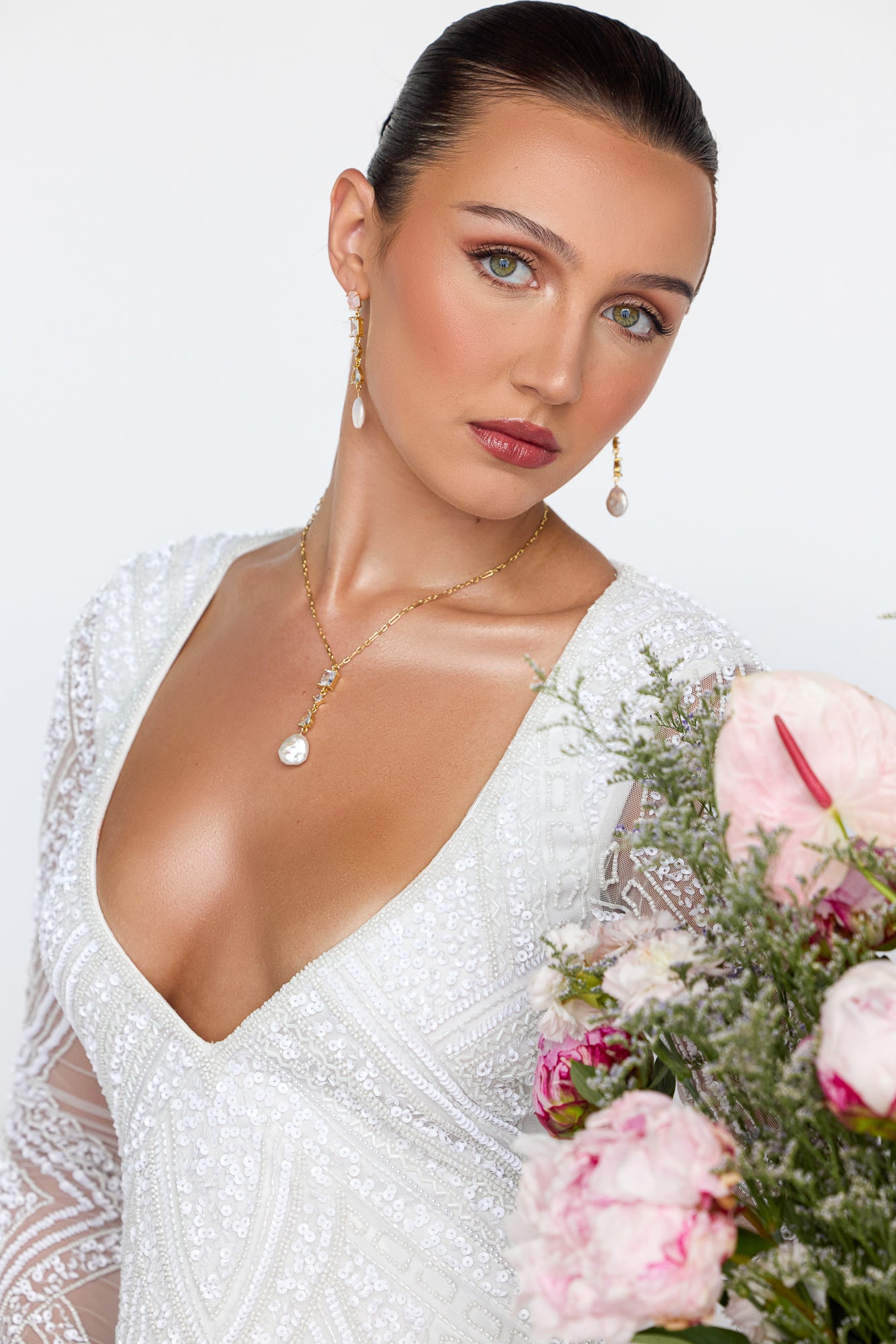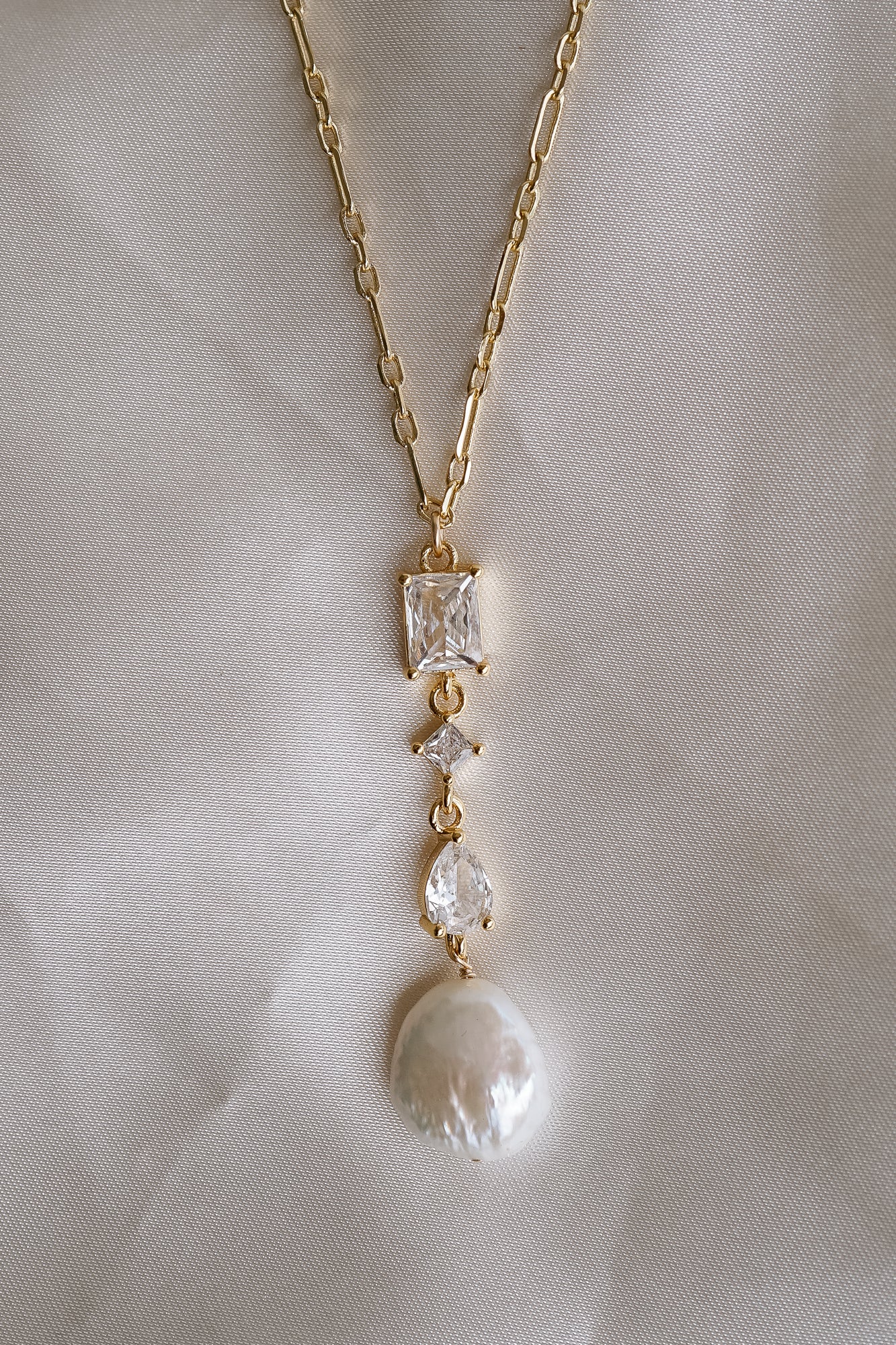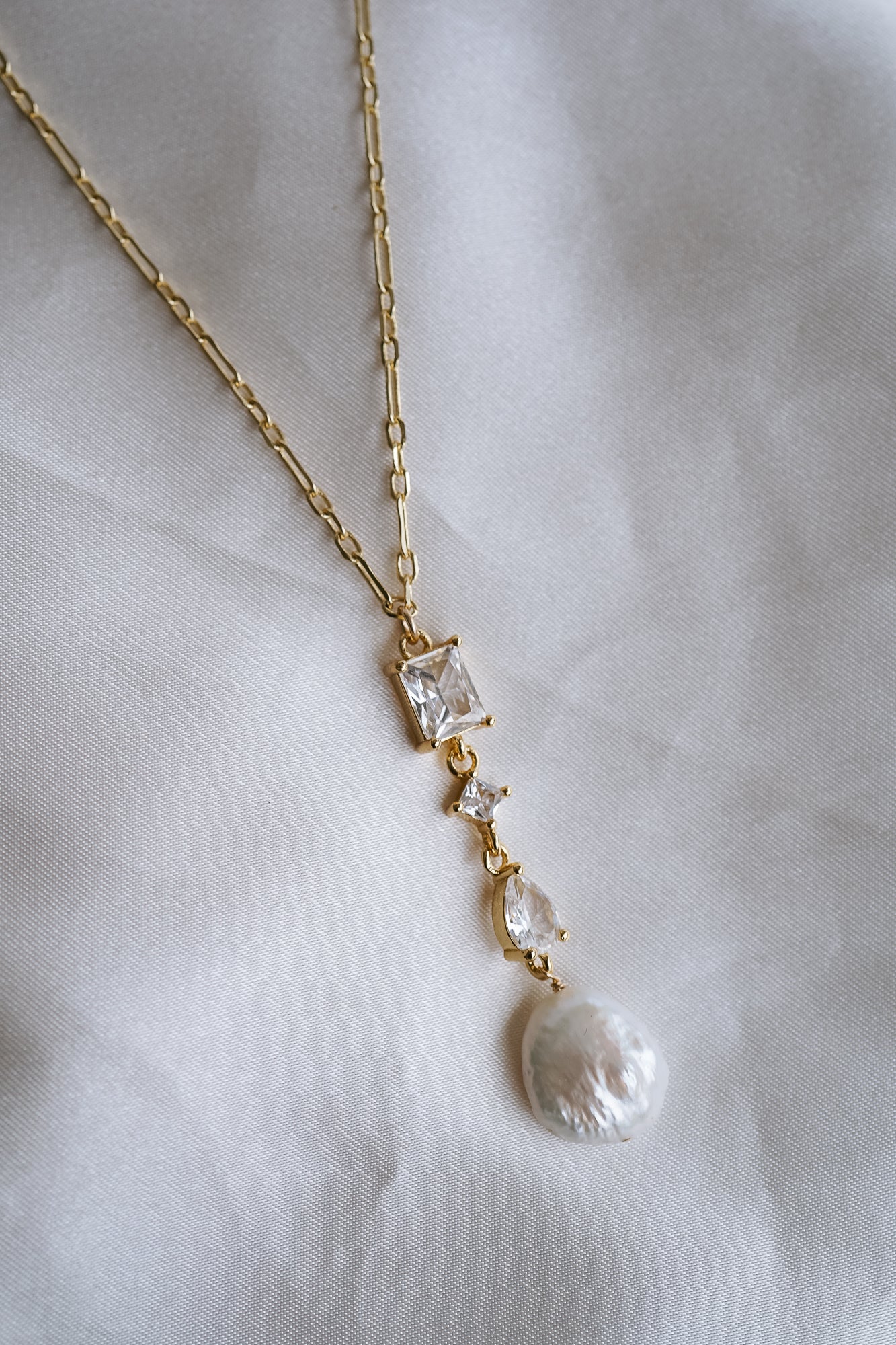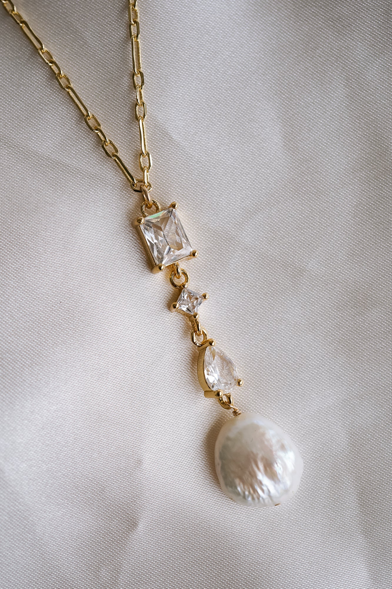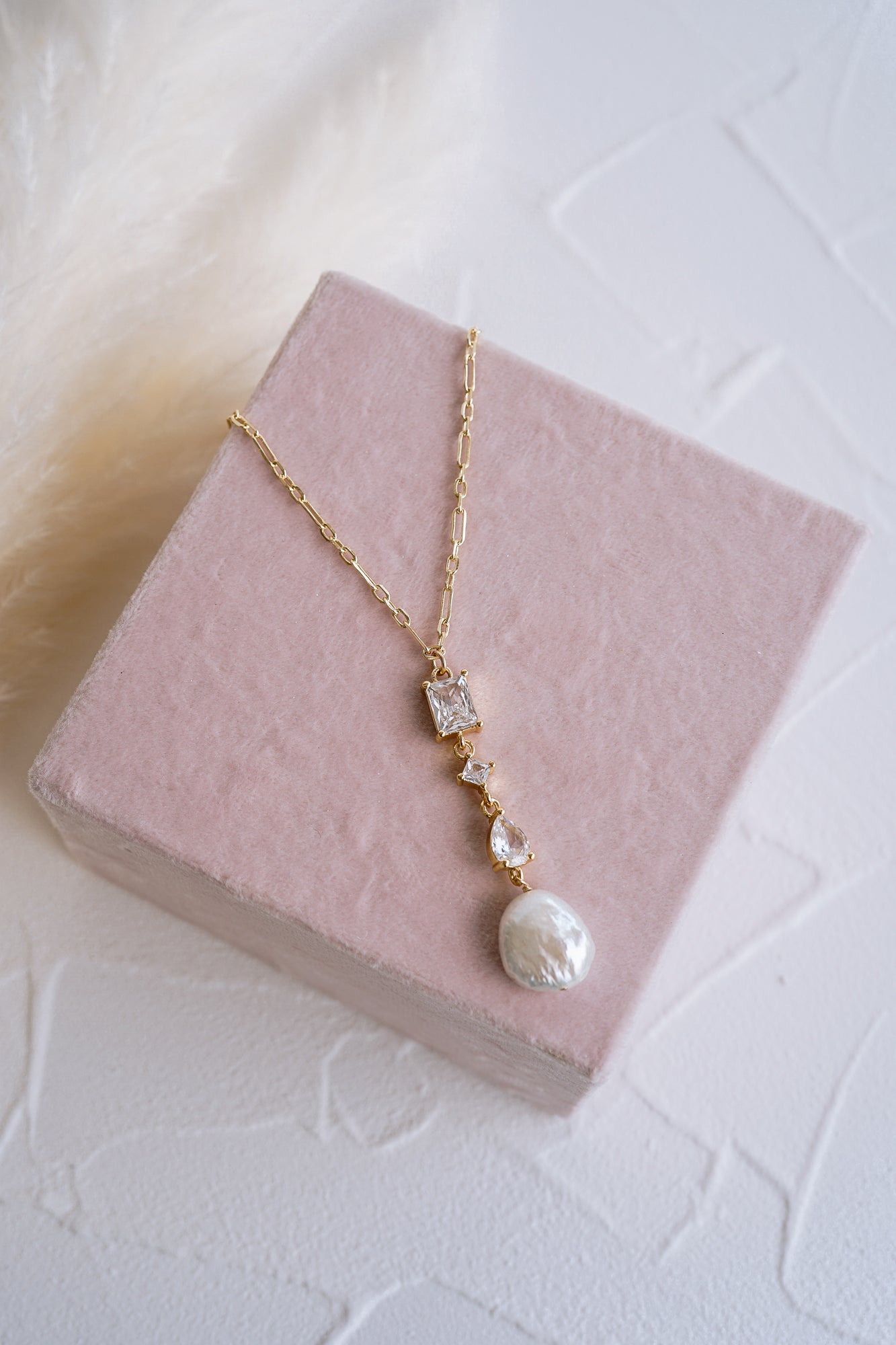 Elevate your bridal look with the Isabelle Pearl Drop Necklace—a modern bridal must-have with a stunning pearl finish. This lariat pearl necklace draws the eye and elongates the neckline, making it the perfect mix of classic and contemporary. Whether worn down the aisle or gifted to someone special, this pearl drop necklace is elegance you’ll never forget.
