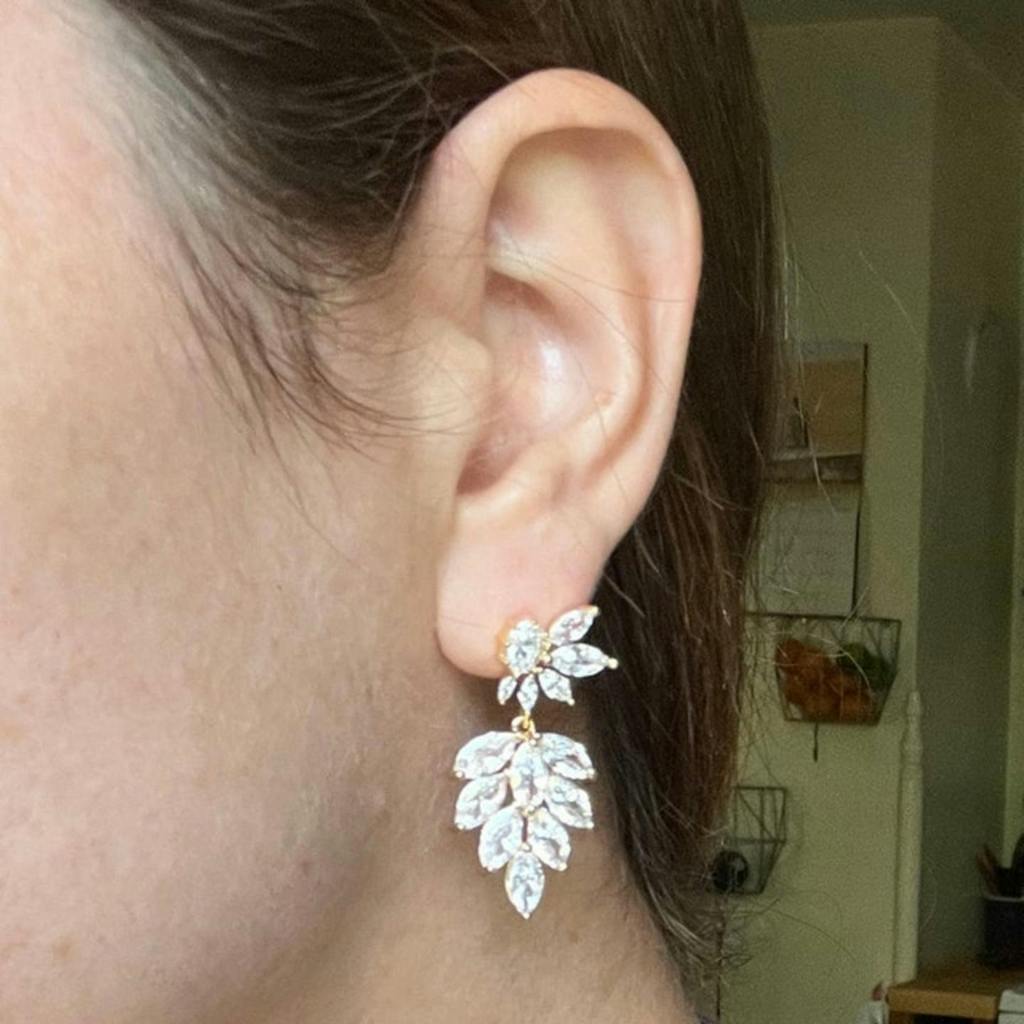 - Blattanhänger im Art-Deco-Stil mit Zirkonia in 16 Karat vergoldetem Messing eingefasst