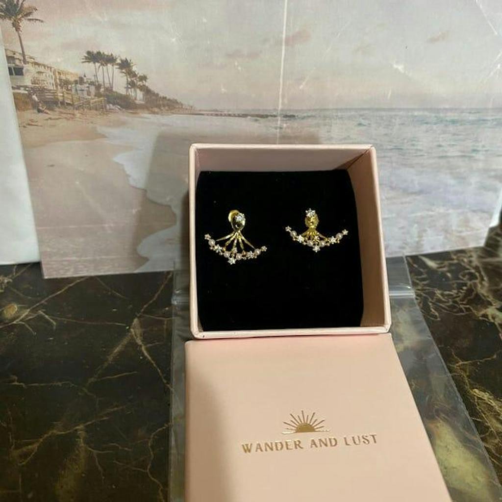 At Wander and Lust, we go beyond ordinary gold-plating. Our jewelry is plated five times longer than industry standards, creating pieces that shine brighter and last longer, so you can enjoy their radiant beauty for years to come. Our collection features 14K gold fill, sterling silver, genuine gemstones, and thick gold plating. Explore our product descriptions for a closer look at the details that make each design truly unique.