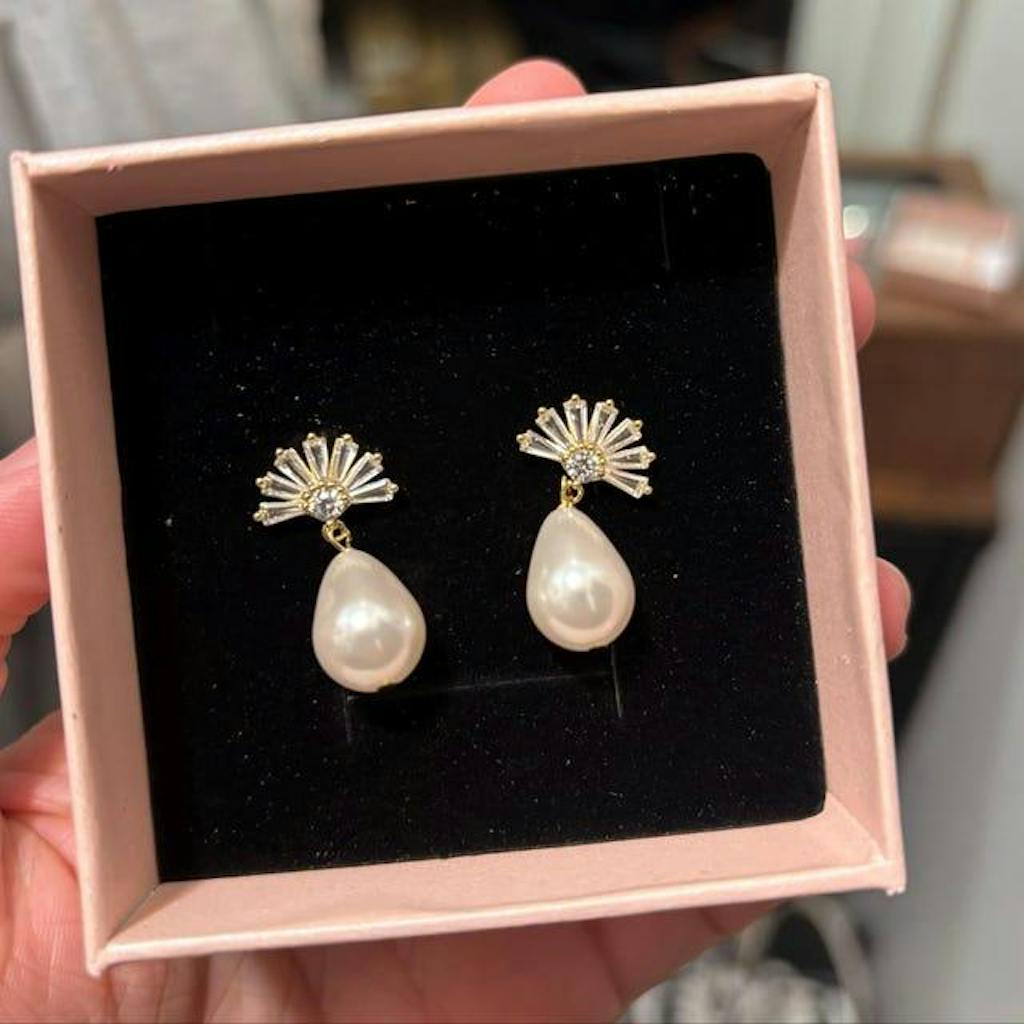 Elevate your jewelry collection with the gorgeous new Etta Art Deco Earrings! Crafted with exquisite south sea shell pearls, these earrings radiate natural beauty. The fan post design, plated in a 16k gold or silver finish, creates a bold and eye-catching look that is sure to make a statement! Whether you're dressing up for a special occasion or adding a touch of elegance to your everyday look, the Etta Art Deco Earrings are the perfect accessory.