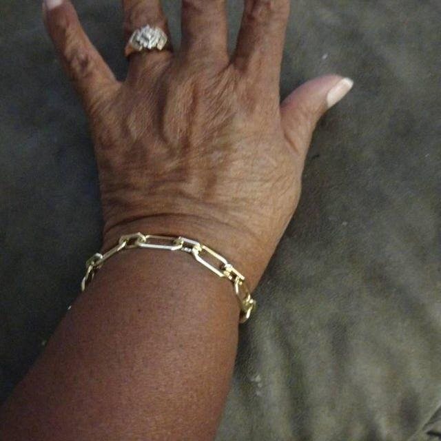 The bracelet is beautiful, and the clasp is elegant. I've been wearing it every day.